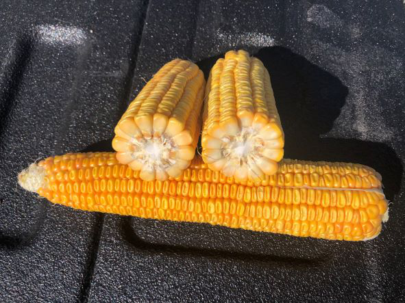 • Long white cob and lots of floury kernels providing high grain content
